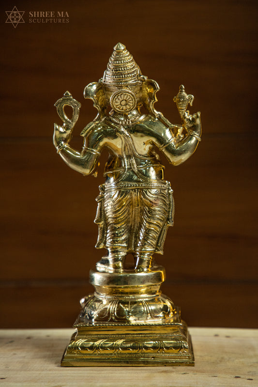 Standing Ganesha 13-Inch Panchaloha Bronze Idol – Handmade Natural-Finish Sculpture