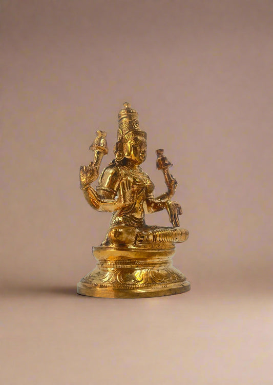 Goddess Lakshmi 3.5-inch Idol | Handmade Panchaloha Bronze Statue