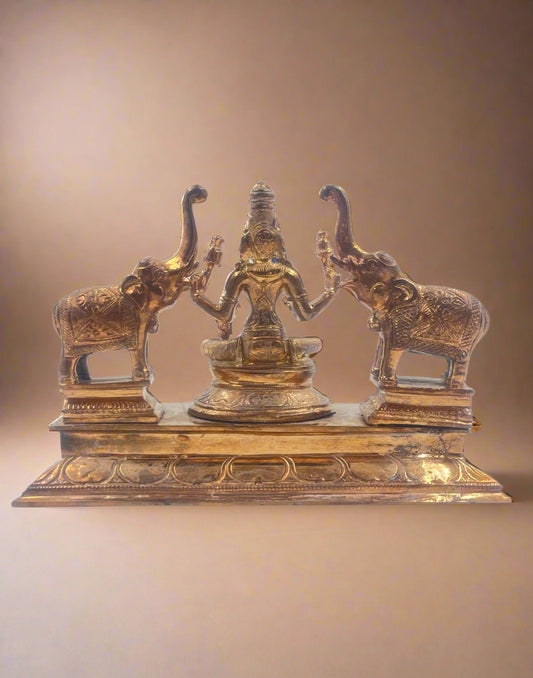 Gajalakshmi seated on Elephant | 9" inches | Handmade | Madhuchista-Vidhana (Lost-Wax casting) | Panchaloha Bronze from Swamimalai