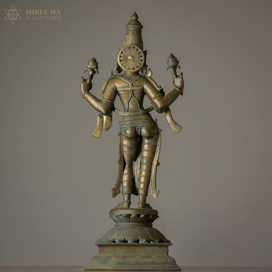 Goddess Lakshmi – 16 Inch Panchaloha Idol (Antique Finish, Chola Style Sculpture)